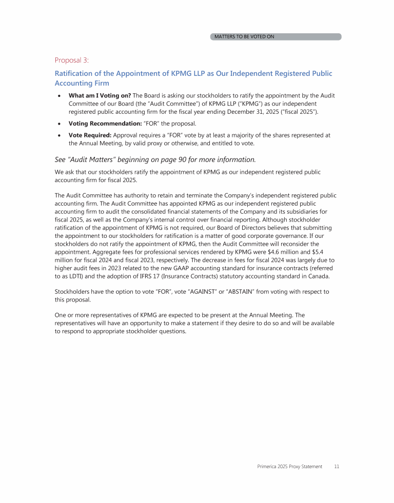 Matters to Be Voted On