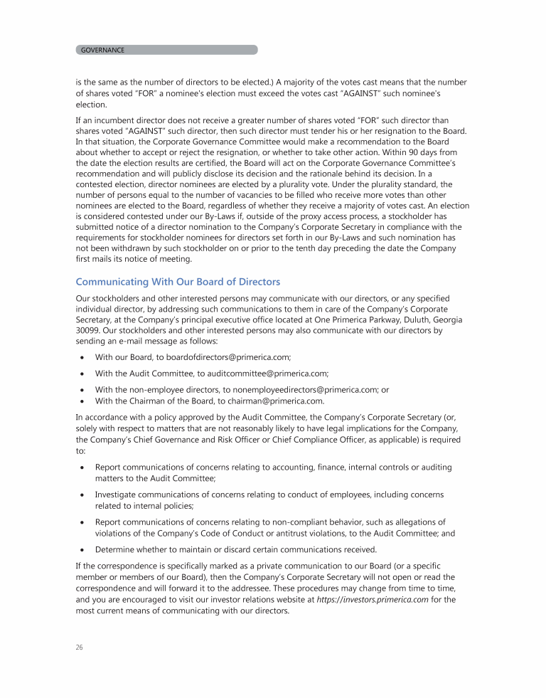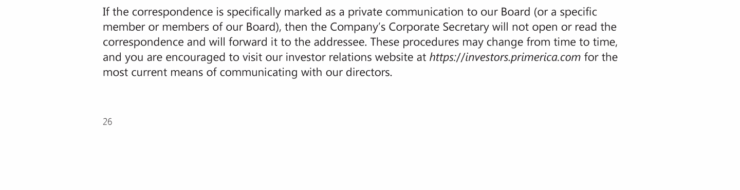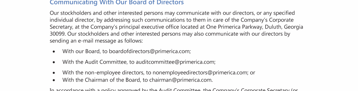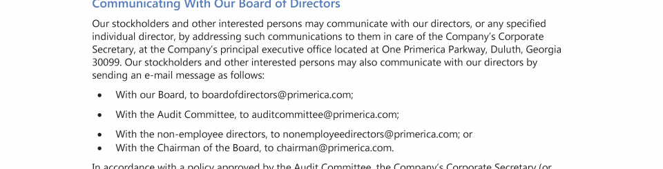 Communicating with our Board of Directors