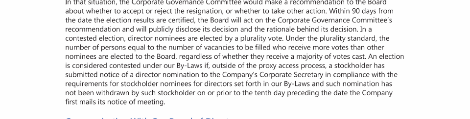 Majority Voting Standard for Director Elections