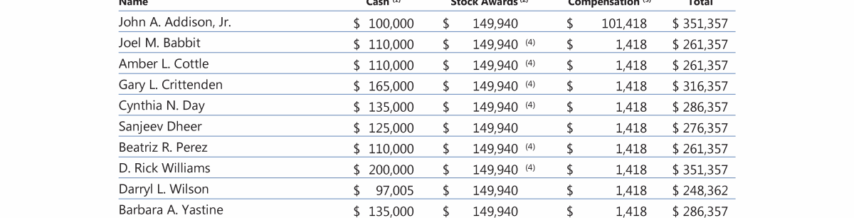 Compensation Tables