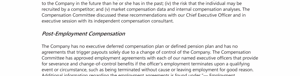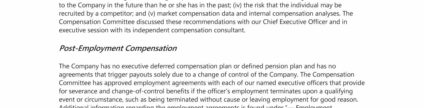 Potential Payments and Other Benefits Upon Termination or Change of Control