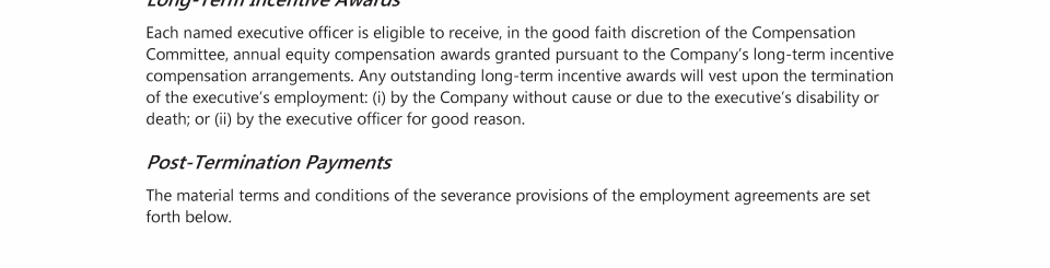 Potential Payments and Other Benefits Upon Termination or Change of Control