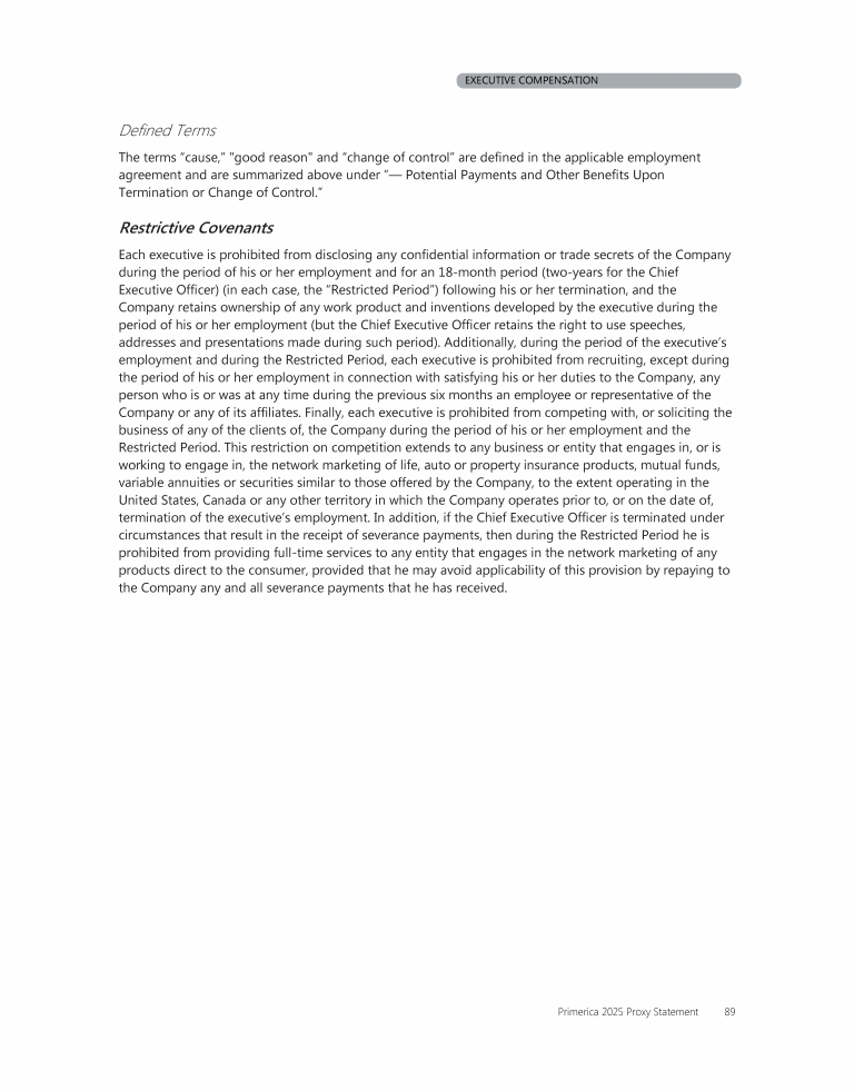 Potential Payments and Other Benefits Upon Termination or Change of Control