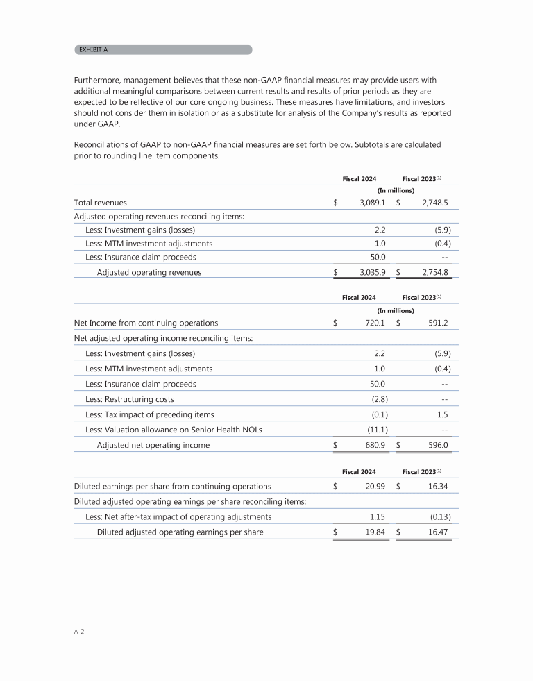 Exhibit A - Reconciliation of GAAP and Non-GAAP Financial Measures