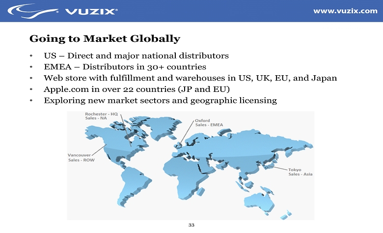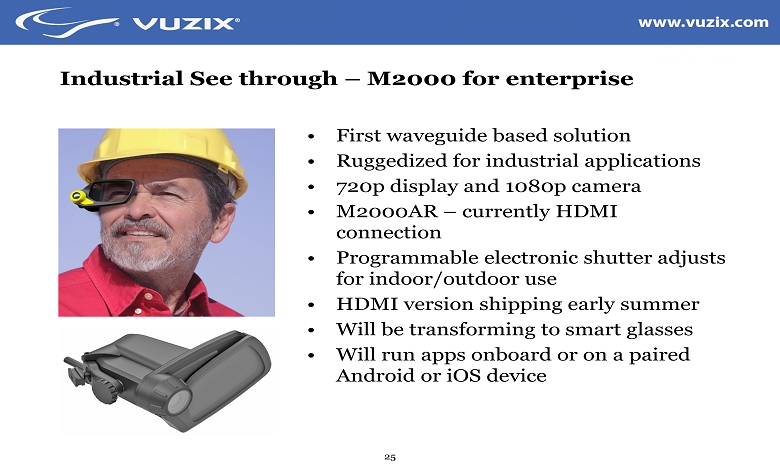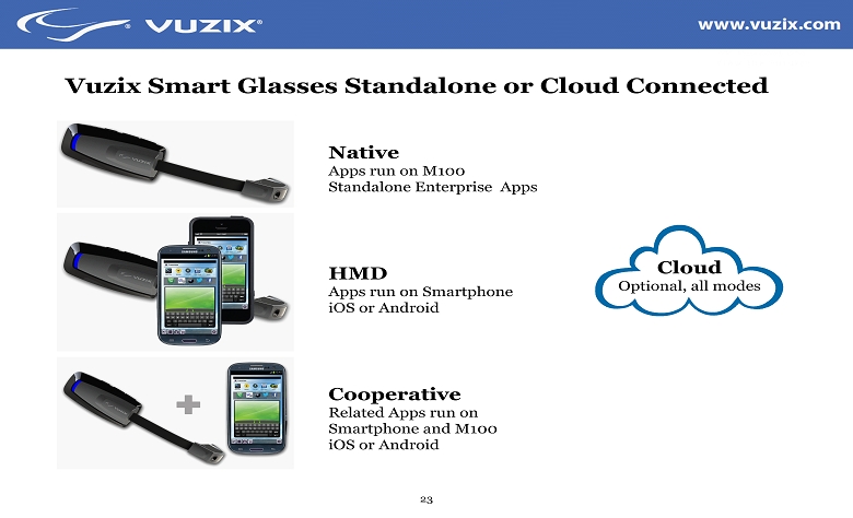 22 Vuzix smart glasses are d esigned to connect with Bluetooth devices/sensors – Enterprise market centric