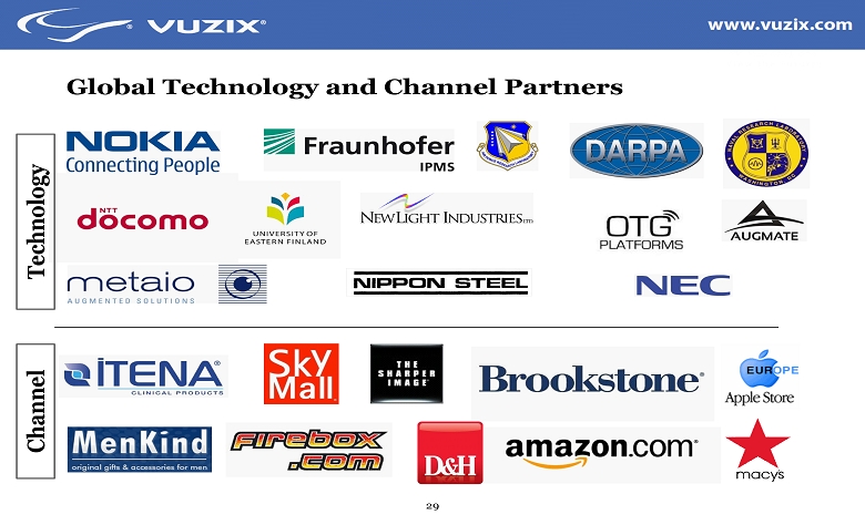 28 Growing Smart Glasses Development Partners • Many thousands of existing developers – AR, VR and Smart Glasses • Online developer portal and support • Smart Glasses SDK – $1k with annual fees • Fully open so enterprise users can customize to their needs
