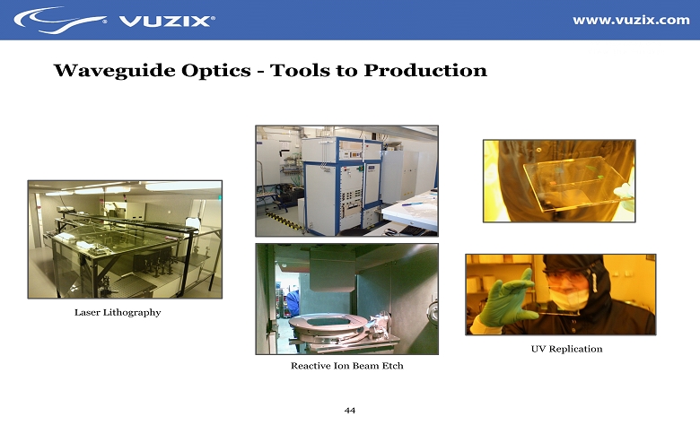 44 Waveguide Optics - Tools to Production Laser Lithography Reactive Ion Beam Etch UV Replication