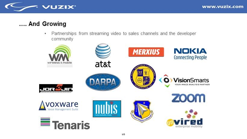 10 …. And Growing • Partnerships from streaming video to sales channels and the developer community