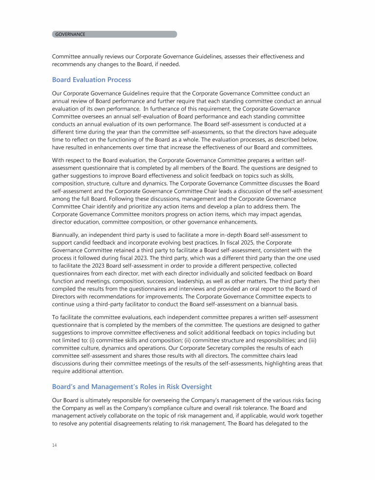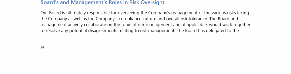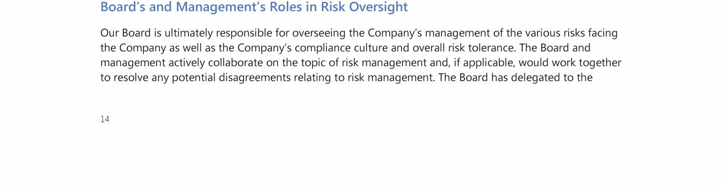 Board's and Management's Roles in Risk Oversight