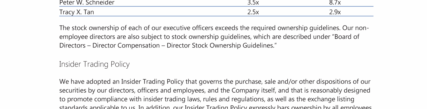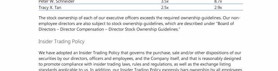 Employee, Officer and Director Hedging