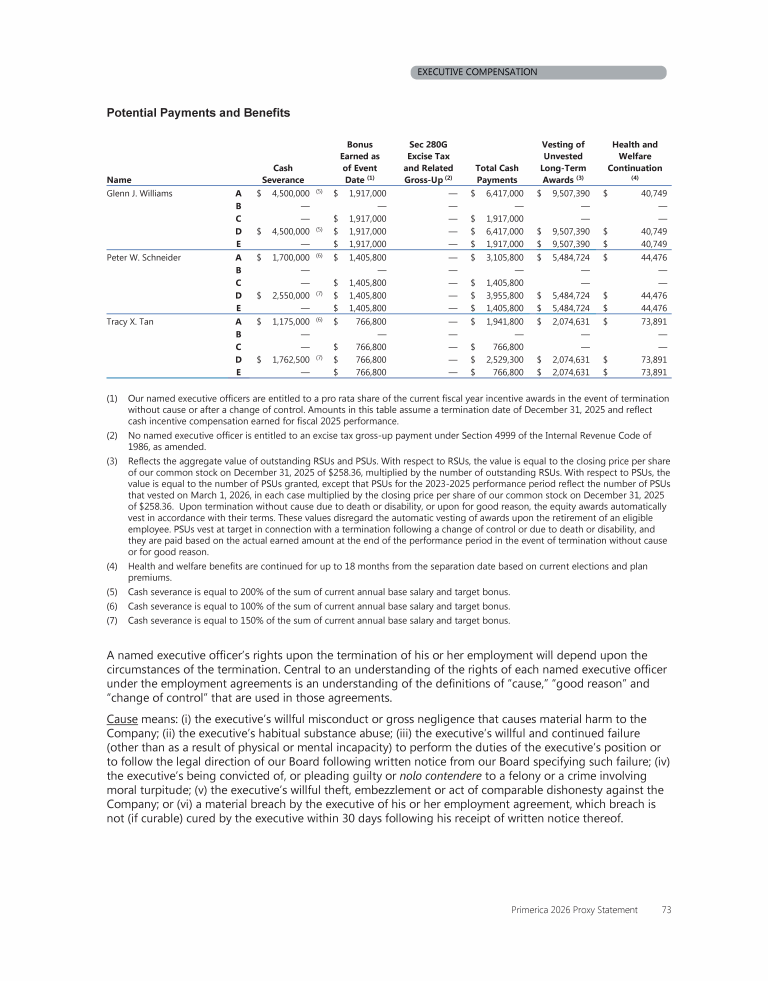 Potential Payments and Other Benefits Upon Termination or Change of Control