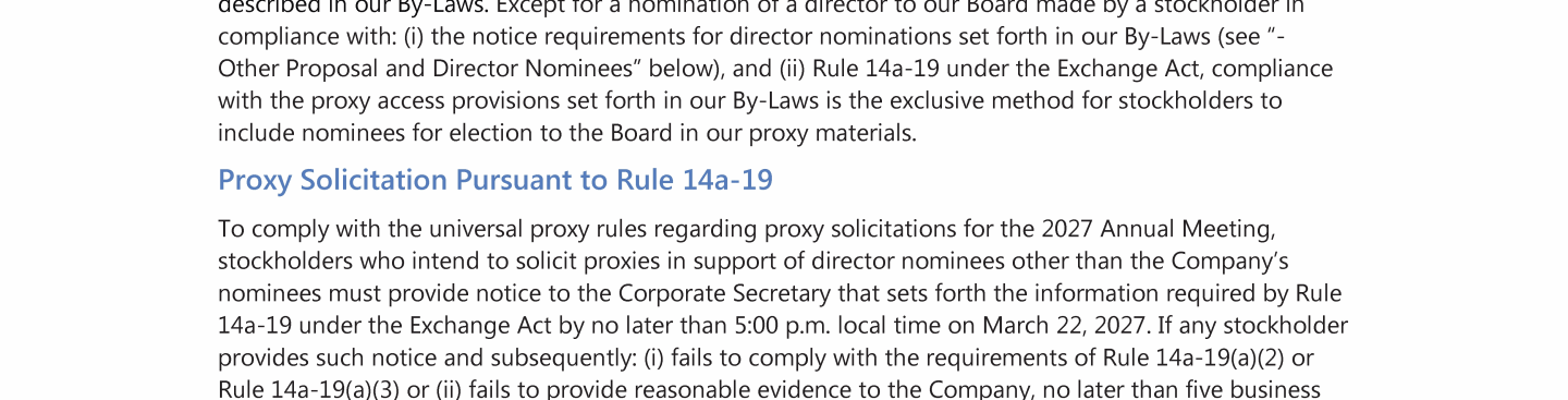 Location for the 2026 Annual Meeting of Stockholders