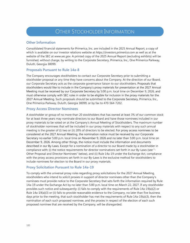 Other Stockholder Information