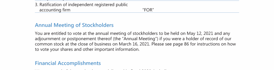 Notice of 2021 Annual Meeting of Stockholders