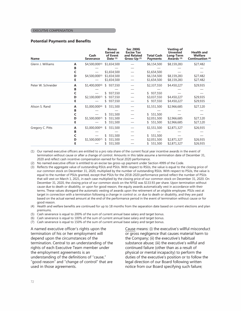 Potential Payments and Other Benefits Upon Termination or Change of Control