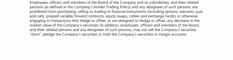 Employee, Officer and Director Hedging