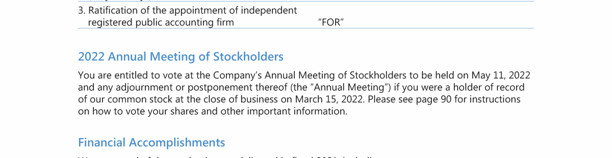 Notice of 2022 Annual Meeting of Stockholders