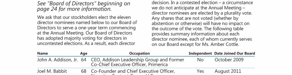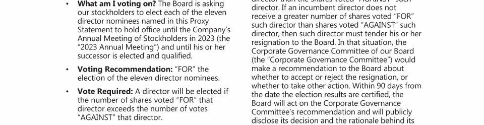 Majority Voting Standard for Director Elections