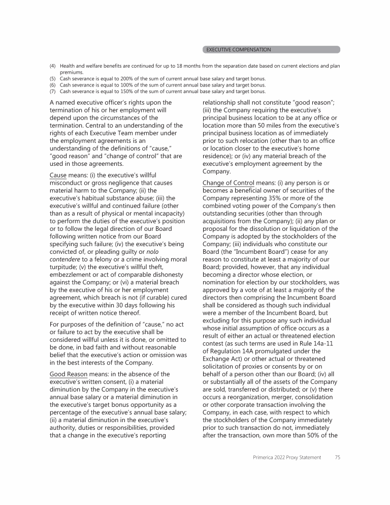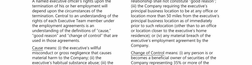 Potential Payments and Other Benefits Upon Termination or Change of Control