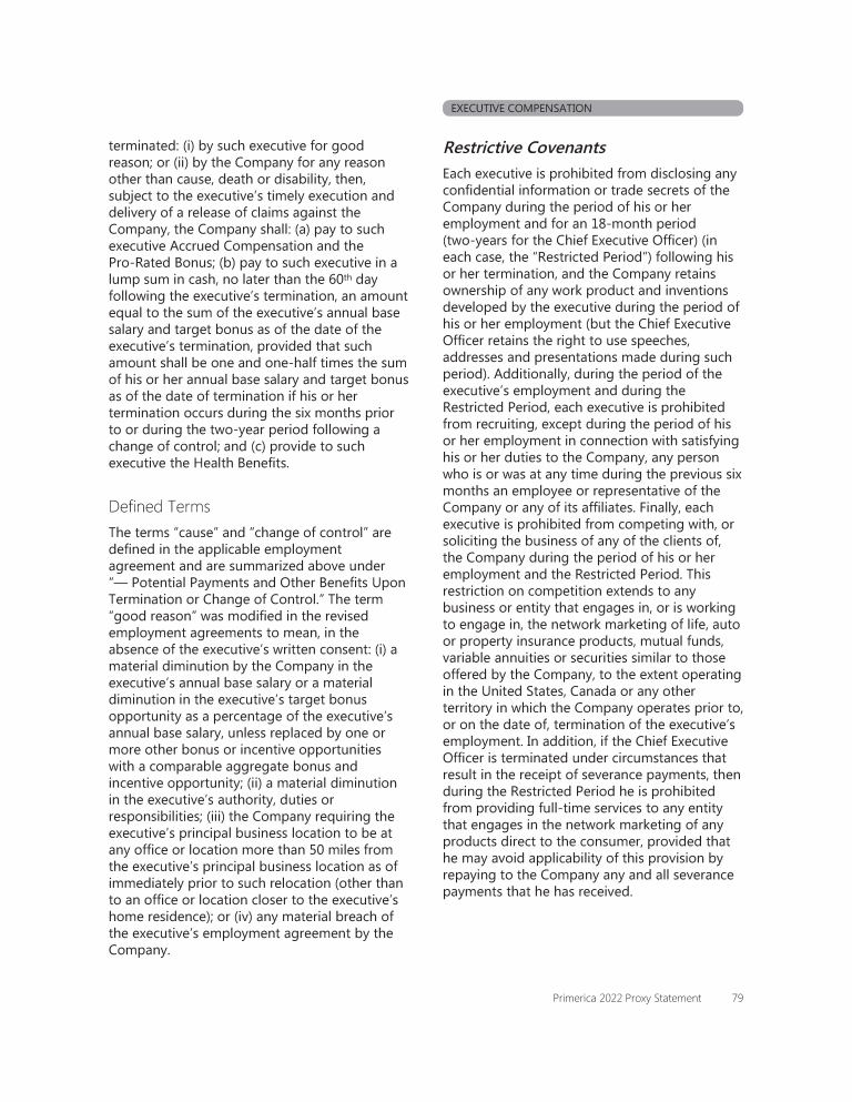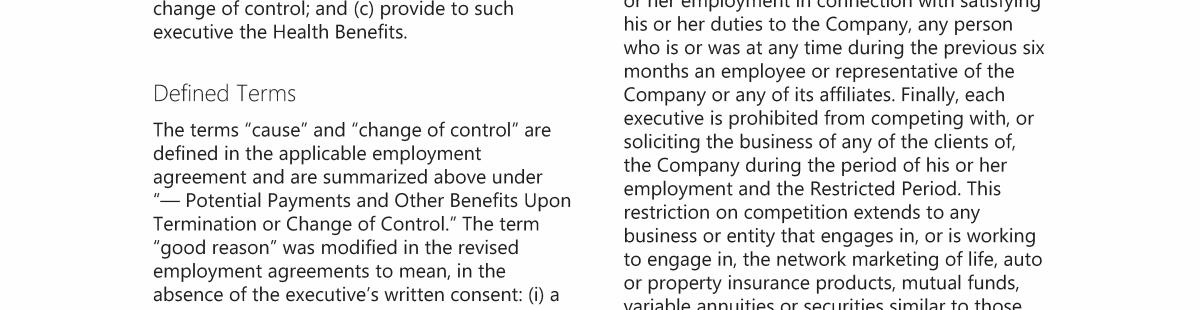 Potential Payments and Other Benefits Upon Termination or Change of Control