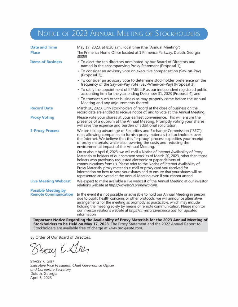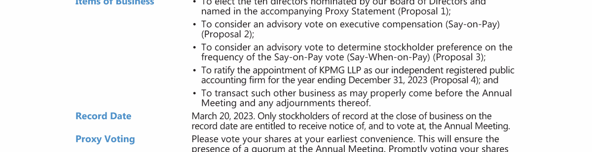 Notice of 2023 Annual Meeting of Stockholders
