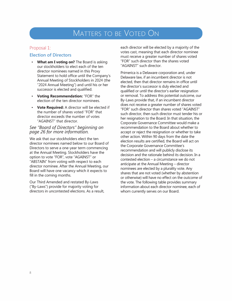 Matters to Be Voted On