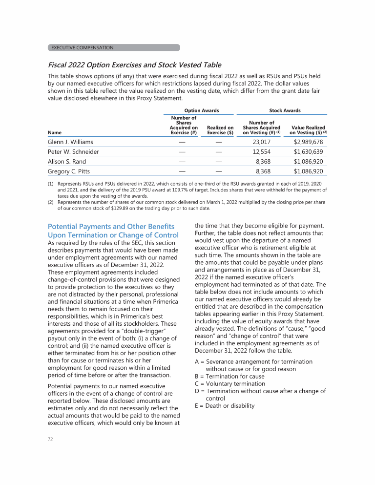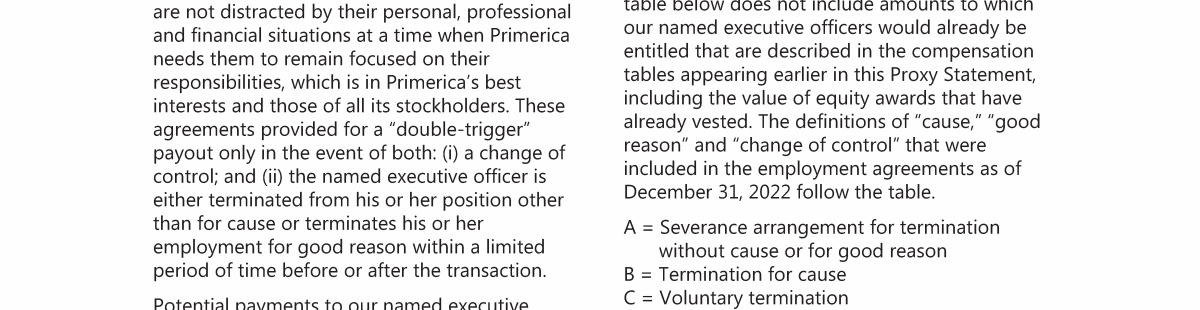 Potential Payments and Other Benefits Upon Termination or Change of Control