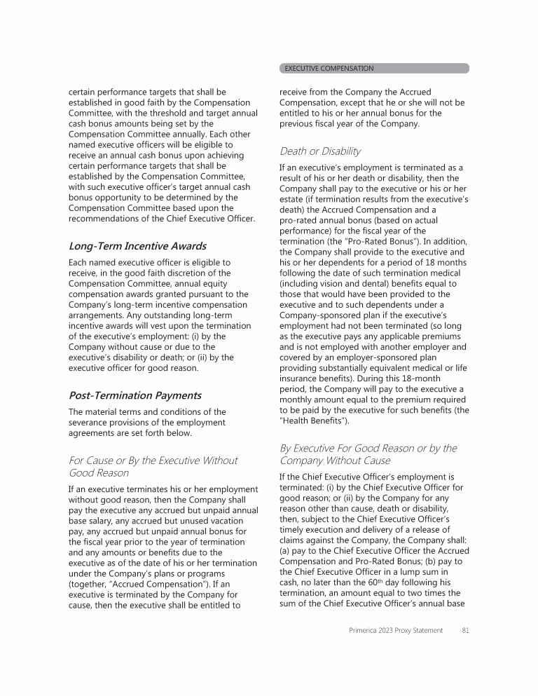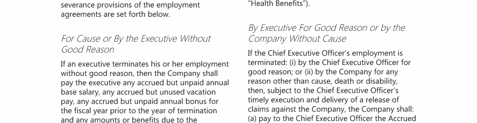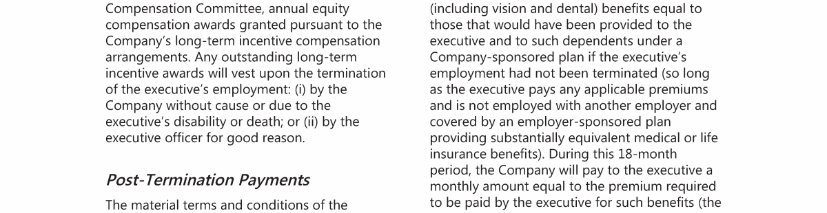 Potential Payments and Other Benefits Upon Termination or Change of Control